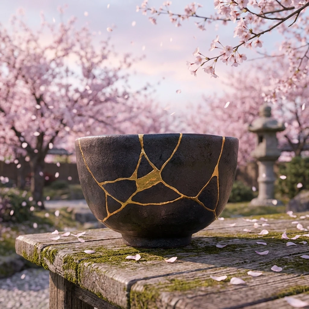 impressive kintsugi, calm beautiful, romantic poetic sakura background, detailed --flagship