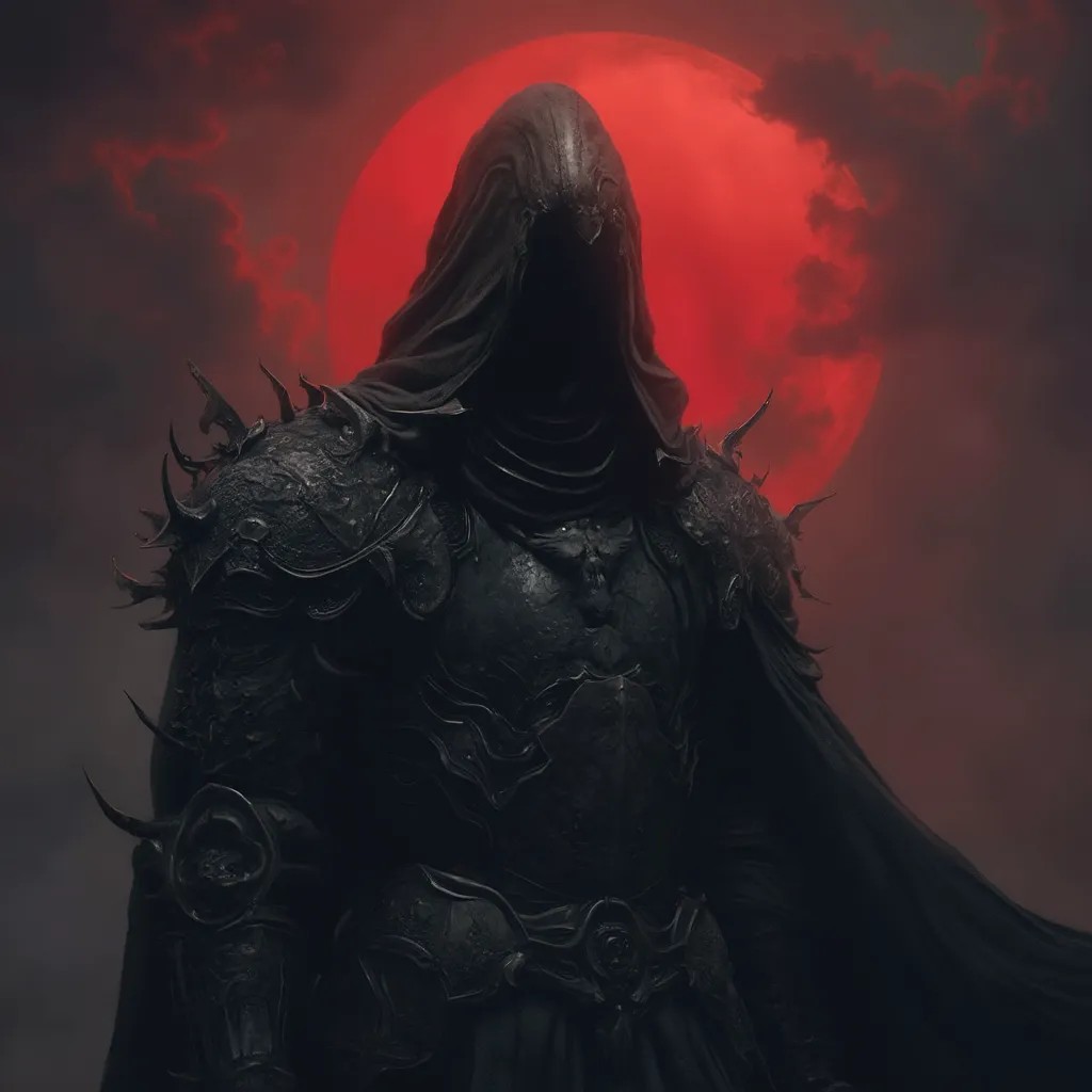 dark veiled knight of death, highly detailed, dark atmosphere with red sky