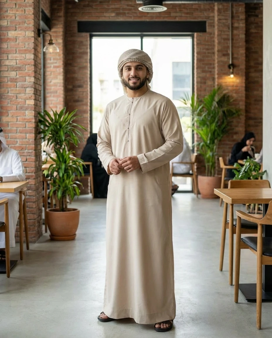 https://s.maginary.ai/results/b4540b4a616e5a7e2bbf095c2a14c905/1_photoshoot_of_a_regular_arabic_manu002c_slightly_arabic_clothesu002c_average_loo.webp dating app profile photo, cafe interior setting, , confident & charismatic, soft window light lighting, outfit, full body portrait, facial expression should be "calm confident", natural skin texture, flattering composition, professional photography, sharp focus, shallow depth of field --ar 4:5 --flagship --2 image should look real, casual and shot on someone's phone spontaneously (decent quality but not hyper professional, as it risks appearing as ai-generated) additional user instructions: waiting for a coffee at a stylish dive bar, friendly atmosphere with a few people in the background