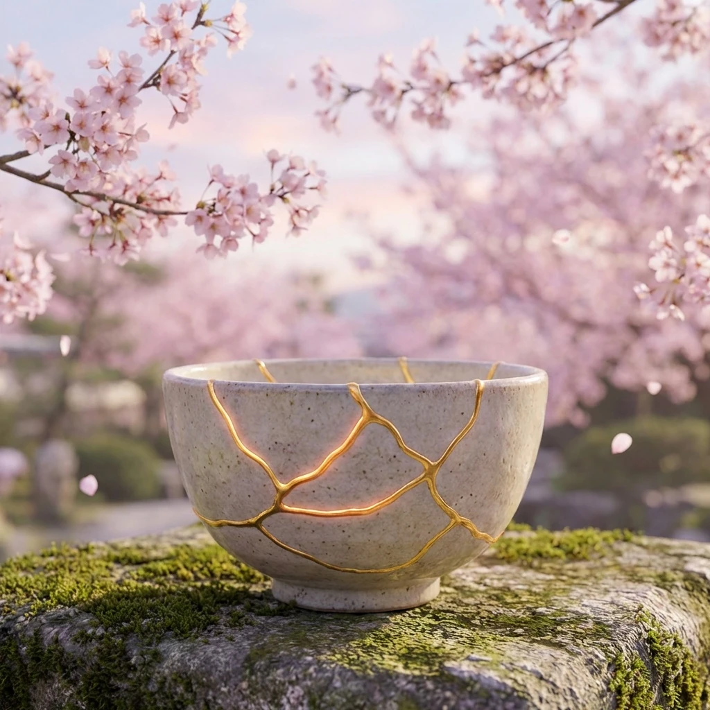 impressive kintsugi, calm beautiful, romantic poetic sakura background, detailed --flagship