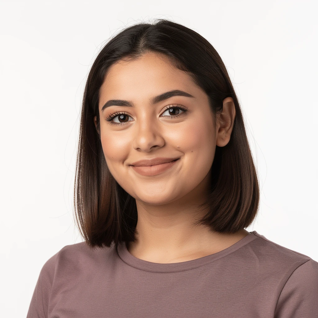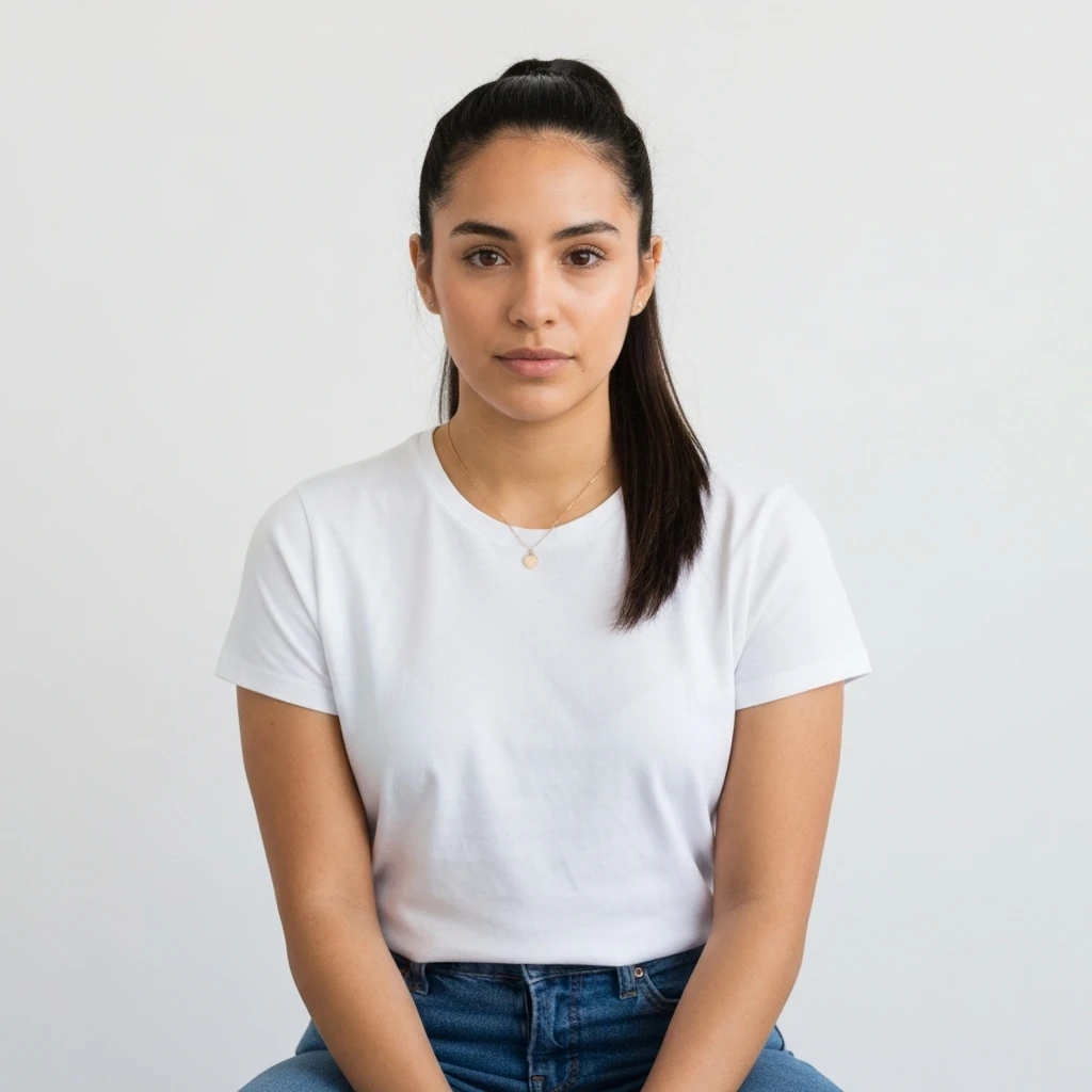 photoshoot of a regular latina girl, average looks, 21yo, white background