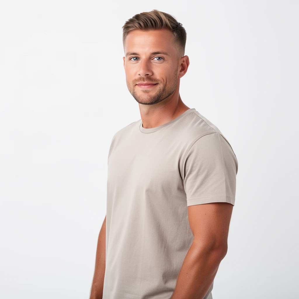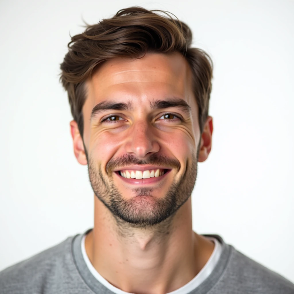 photoshoot of a regular white man, average looks, 26yo, white background