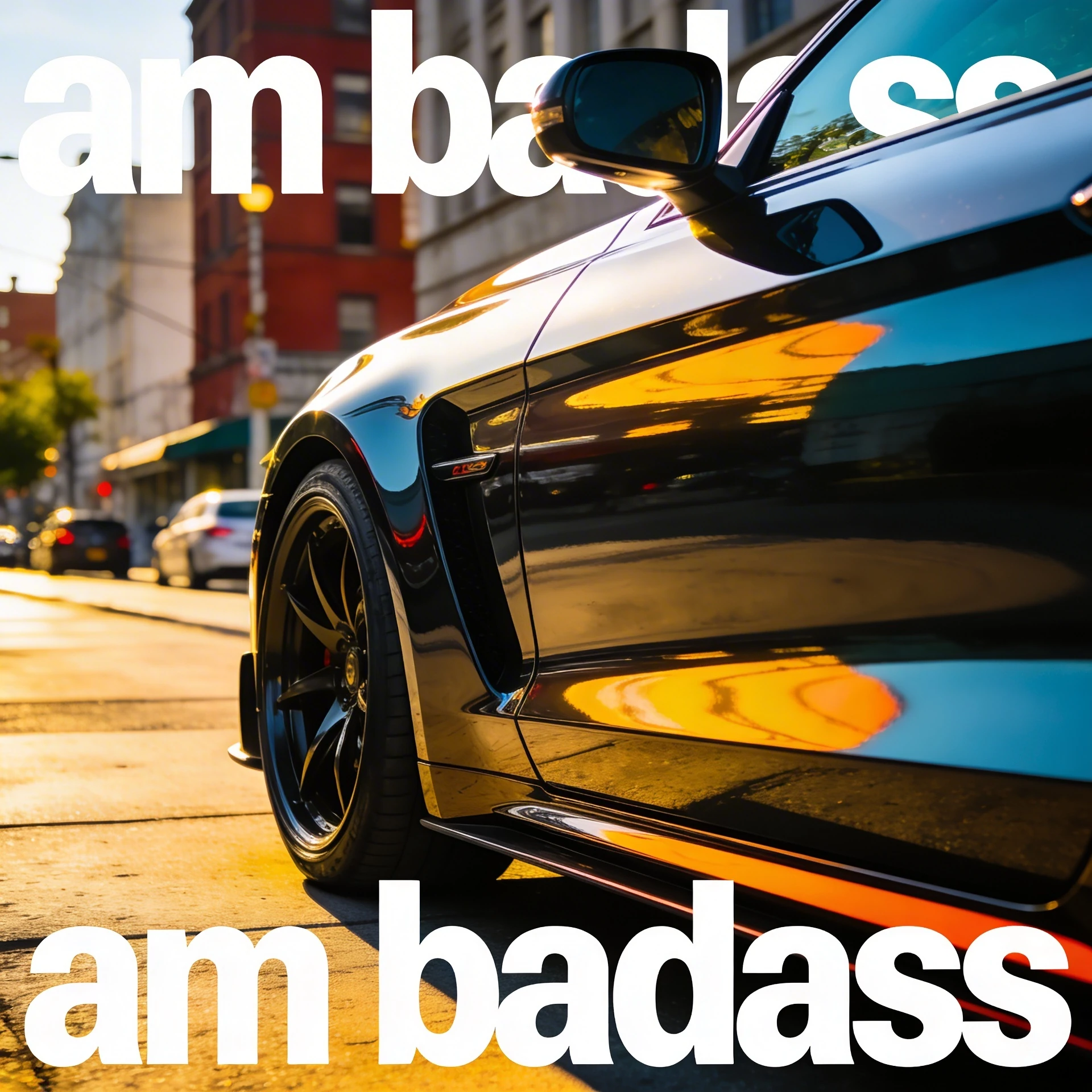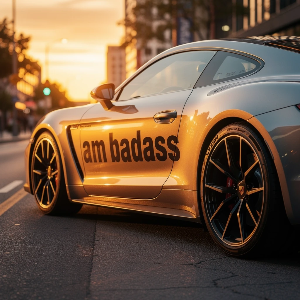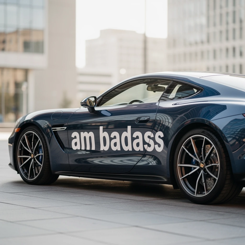 car with text on it "am badass"